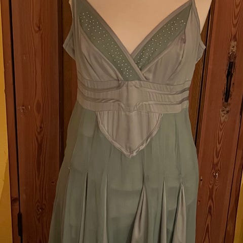 Fest/cocktail kjole i størrelse 40 med flot udskæring, og bar ryg. Bæres uden BH, da overdelen har Fast BH og et undrstukke som gør at kjolen sidder flot. Der er et lille sjal til kjolen