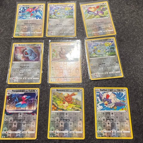 Pokémon samlekort med forskellige figurer, herunder blandt andet Magmar, Stantler, Barboach og flere. Kortene viser forskellige angreb og evner, som Flame Tail, Headbutt, og Energy Club. Kortene har forskellige HP-værdier og tilhører forskellige Pokémon-arter.