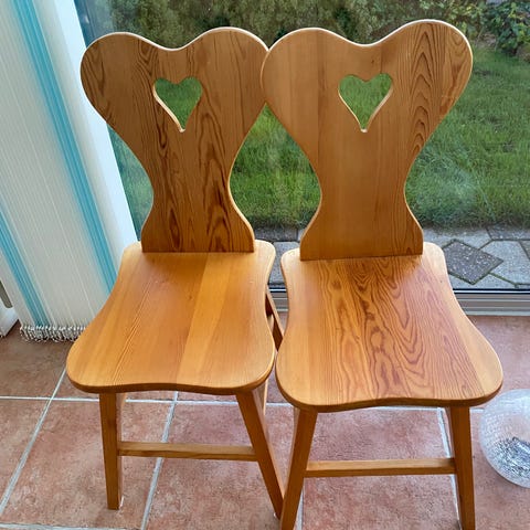 Ryglæn på begge kan godt bruge lidt lim. Den ene er lakeret og den anden har ingen behandling
