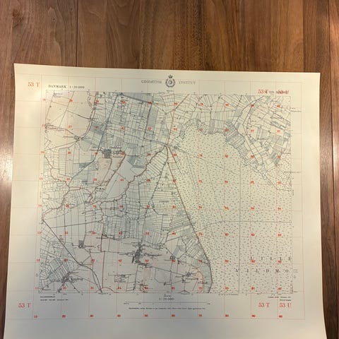 Vægkort fra 1951: Spentrup og omegn (perfekt stand)