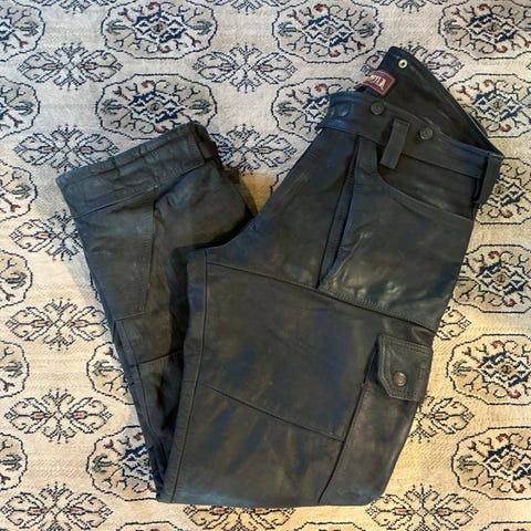 Härkila læderbukser til herre i størrelse 56 og farven brun. Bukserne er fremstillet i læder og har flere lommer til opbevaring. Indvendigt foret med satinlignende materiale.