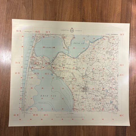 Vægkort fra 1951: Faarup og omegn (perfekt stand)