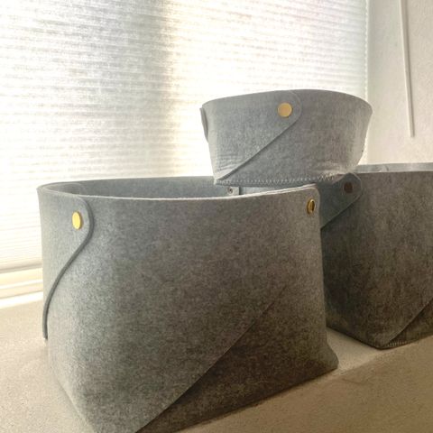 Ilva Filtkurve sæt bestående af 3 stk i grå farve. Kurvene er lavet af filt materiale og har håndtag for nem transport. Sættet inkluderer kurve i forskellige størrelser, velegnet til opbevaring i hjemmet.