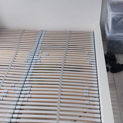 Nogle år gammel IKEA malm seng. I generel god stand, men har et hovedgærdet hvor den ene side er bleget af solen.