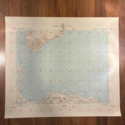 Vægkort fra 1951: Løvel og omegn (perfekt stand)