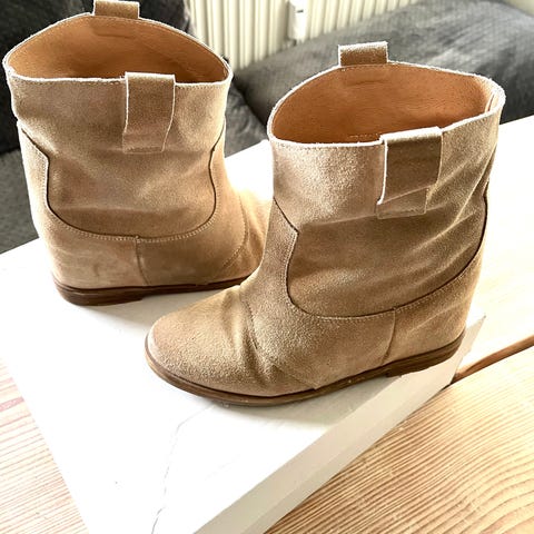 Superlækre støvletter i skind - brugt ganske lidt. Der er lidt brugsspor op indersiden. Der er lynlås bagtil