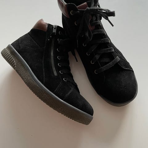 Læder støvle ‘bygget på’ Green Comforts brede ‘læst’, dvs. at det er en sund støvle hvor der er plads til fødderne. Den er med snørre så du kan tilpasse støvlen og med lynlås så den er nem og hurtig at tage på.