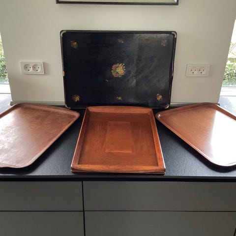 flettet/parketmønster og blødt afrundede kanter. Design og udførelse svarer til de norske Langva-bakker fra 1960-70'erne.