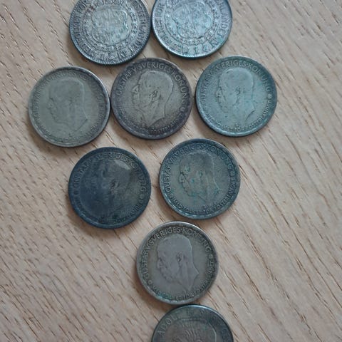 60 stk svenske sølv 1 kroner, samlet vägt,420 g,=168g finsølv. årstal, 1948- 1968. Sælges kun samlet. Sender gerne!!!!