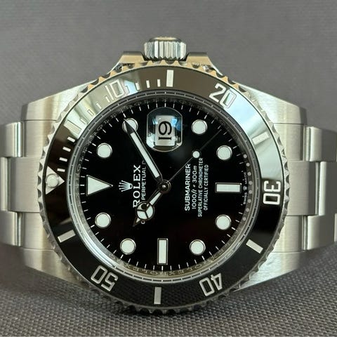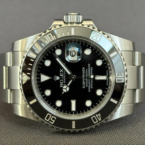 Komplet eksemplar af den ikoniske og eftertragtede Submariner Date 116610LN med en diameter på 40mm fra dansk AD. Inde i låsen sidder Rolex’s system ‘glidelock’ som let kan justere omkredsen på lænken. Inde i den massive stålkasse sidder Rolex’s Caliber 3135 som yder 48 timers gangreserve og en garanteret vandtæthed ned til 300 meter.
