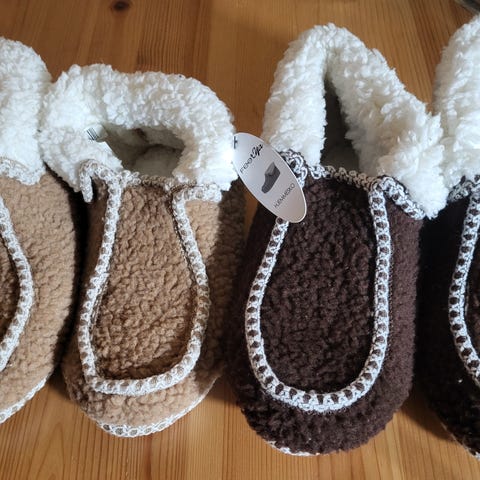 Nye med print og er lækker bløde indvendige, sål udvendig måler 25cm.