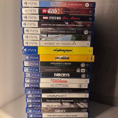 En Pakke med 4 PlayStation spil sælges, Horizon Zero Dawn Forbidden west(gratis ps5 upgrade) Super Lucky's tale, samt Nickelodeon all star brawl 2(ps5) og Tiny tina wonderlands sælges samlet.