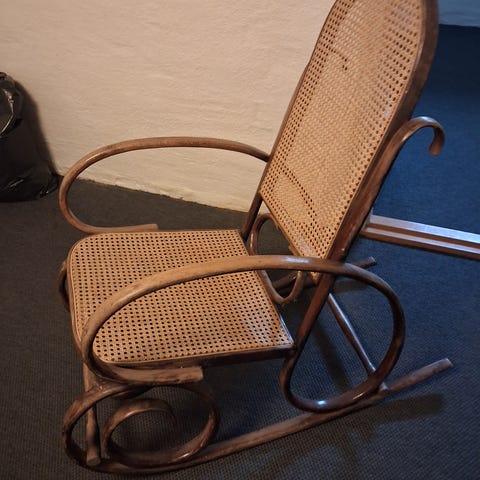 Fed gammel gyngestol med fransk flet