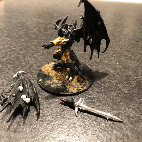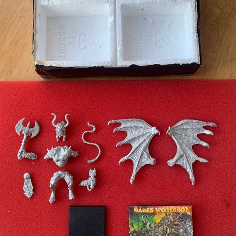 Warhammer Fantasy Chaos Lord Khorne on Daemonic Steed. Komplet metalfigur fra 1990'erne