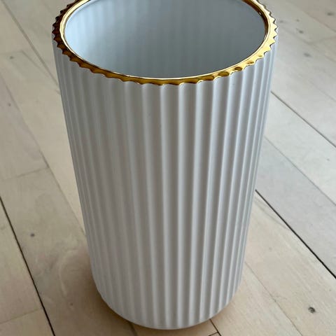 Lyngby vase i farven hvid og guld.