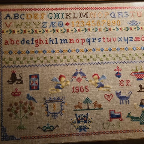 Vintage broderi i ramme.