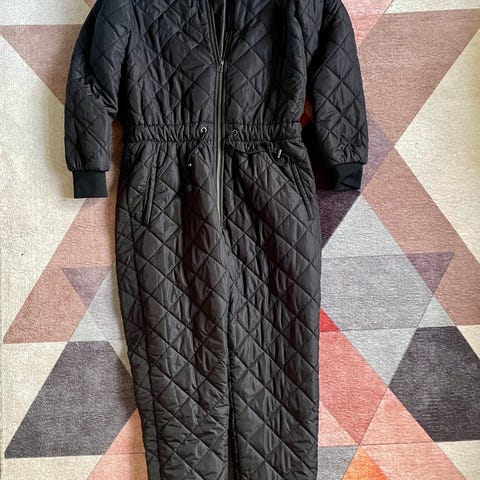 En lækker jumpsuit i jeans stof str. large med lille ærme og lynlås. Brede ben.