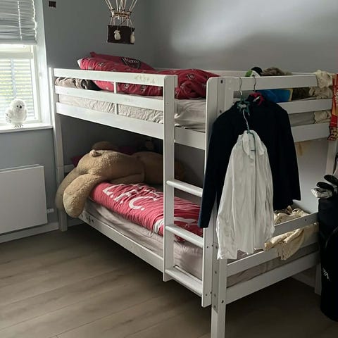 Køjeseng sælges billigt, den står samlet men hjælper gerne med at skille ad og bære ned fra 4. Sal :) på Amager, den har lidt brugsspor men ikke meget, begge 90cm madrasser inklusiv vådliggerlagen og lagen følger med :)