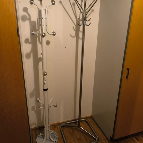 Væghængt stumtjener. Klassisk stil i stål, med messing lignende knopper for enden. 2 Stk. 200 kr. For begge.