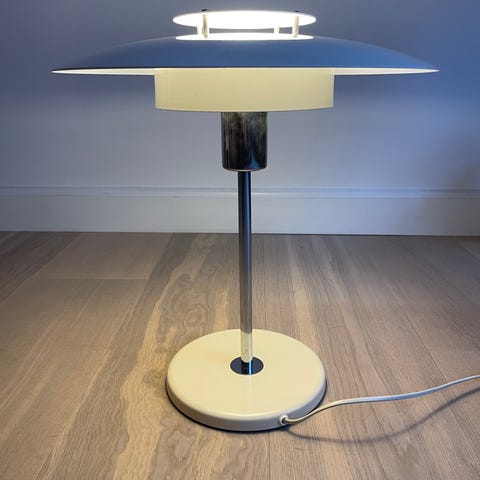 Klassisk bordlampe udført i stål. Monteret med en led-pære med 3 styrke-trin.
