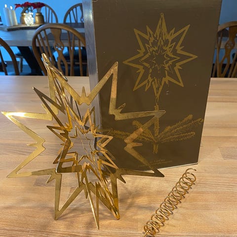 Topstjerne til juletræ i guld og glimmer.