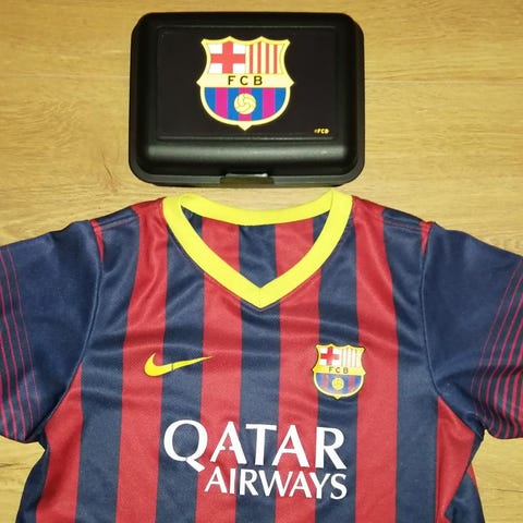 FC BARCELONA HJEMMEBANE TRØJE 2017 STR. 6/7 ÅR I FLOT STAND, DRIFIT/POLYESTER OG NY FC BARCELONA MADKASSE, 14X19 CM, HØJDE 7 CM, OFFICIAL MERCHENDISE. SUPER SÆT TIL DEN LILLE FC BARCELONA FAN, PRISEN ER FOR BEGGE DELE. NB ER VAREN AKTIV ER VAREN TIL SALG, SENDER GERNE, BETALING INDEN AFSENDELSE. SÆLGES IKKE SOM FIKS FÆRDIG.