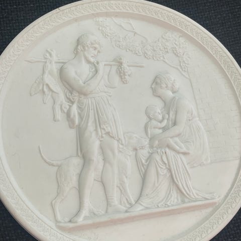 Bing & Grøndahl. Biscuit Thorvaldsen platte, Vinter. 13,5 cm.
