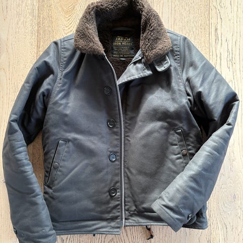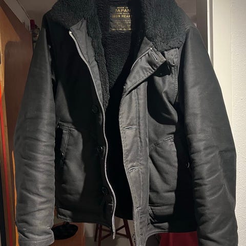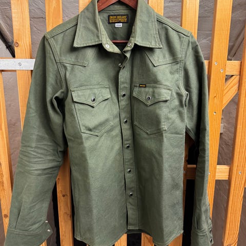 Denne Ironheart 18oz Vintage Selvedge Denim CPO Shirt, får det mest gennemførte slid/patina - Indigo Overdyed Black str medium - brugt max 10 gange ca. Ikke vasket, så du selv kan præge slid kr 2.000,-
