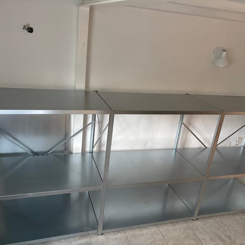 Sælger metalreol som har været brugt i kælder til opbevaring.