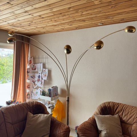 Cottex 5 armet lampe i crom med marmor fod. De 5 kupler kan vendes så lyset drejer opad. Der er snor så kampen fungerer i 3trin og med forskellige pærer der tænder hver hvert trin. Pærer E14. Lampen fremstår i flot brugt stand og gir en perfekt lys.. ♻️ Varen findes hos Shop’n lop Fredericiavej 97 7100 Vejle. Instagram Shopn.lop.