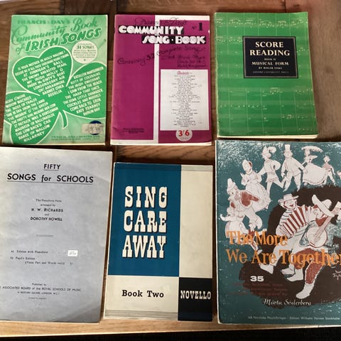 Singing together-100 engelske og amerikanske sange, Knud Wiskum Sørensensen -red/, emne: musik, Sange, tekster og noder, udgivet på Nyt Nordisk Forlag, 3.udgave, 1970, 97 sider.