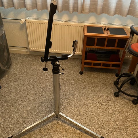 Solidt og justerbart harmonikastativ, som gør det nemt at gå til og fra harmonikaen og kan aflaste ryg og arme efter behov.