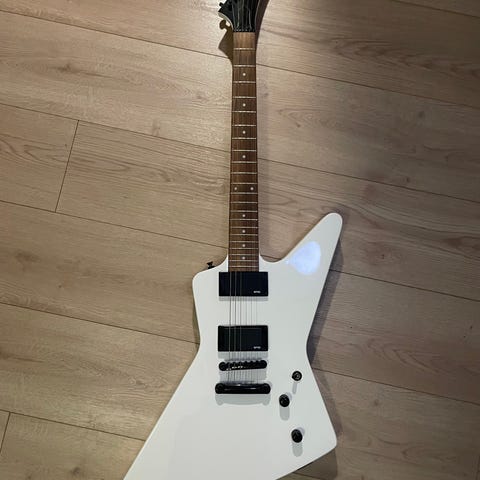ESP King V from 2006 in original spec with original fitted hard case. This is a very rare model made only briefly after Megadeth's Dave Mustaine pulled out of his short endorsement deal with ESP between endorsements with Jackson and Dean guitars. It is the same spec as Dave's DV8 signature guitar, but without his name and 8-ball inlay on it. I spoke with Dave and asked him about this guitar and what happened with him joining ESP after Jackson, only to abruptly leave ESP. He explained that this guitar was created after ESP was forced to pull his likeliness from their Dave Mustaine signature guitars after a breach of contract, where ESP's American leadership had offered a double-neck version of his guitar for sale without notifying him and cutting him in. Dave asked ESP's American leadership why they had an unauthorised model up for sale outside of their contract with him. They claimed the contract didn't expressly say they couldn't do it, and Dave replied that he was happy to end their relationship if that was how they were willing to do business. Thus, we have this Dave Mustaine DV8 in all of the same spec, but without Dave's likeliness attached. It is a very cool piece of history and an extremely well balanced instrument. I own several of Dave's guitars and other Megadeth instruments, so check out my other listings and follow me here to see the rest if my collection as it gets added.