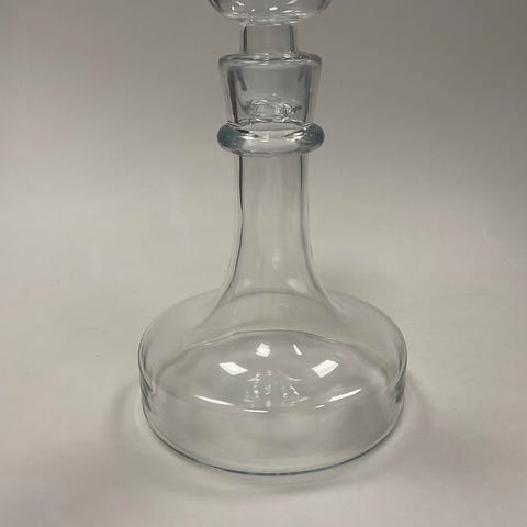 Karaflen er i perfekt stand - ingen ridser/skader - fuldstændig ren indvendeigt, den forekommer aldrig at have været anvendt. Den måler hele 35,5 cm i højden (prop inklusiv).