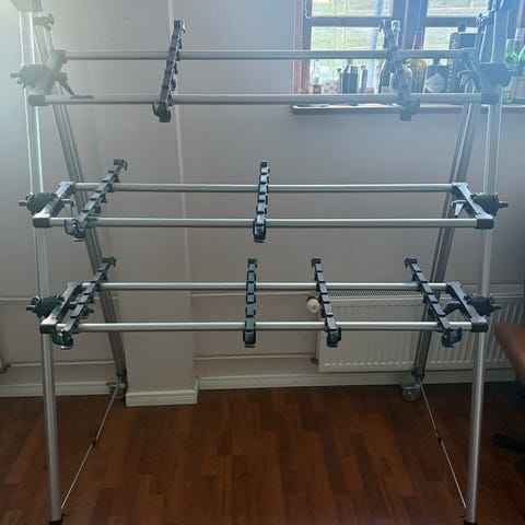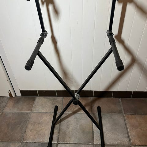 SUPER fedt "stativ" til vægmontering. Sparer mega meget plads og klarer vægtmæssigt temmelig tunge synths. (Bedøm selv). Voldsomt robust.