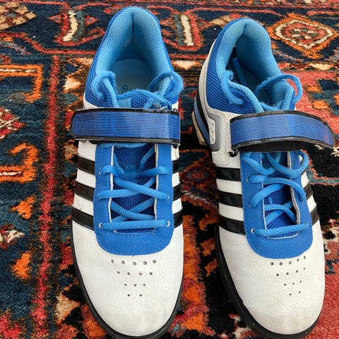 Adidas powerlift 4 til styrketræning str. 42 2/3 som har en høj hæl, hvilket gør at man kan komme længere ned i f.eks. squat