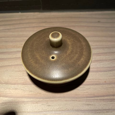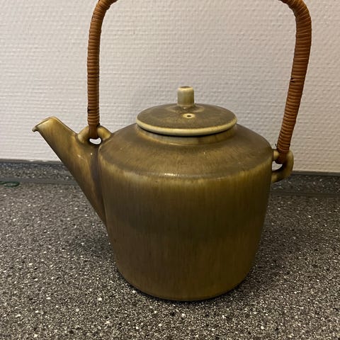 Stentøjs tekande udført i olivengrøn harepelsglasur fra Palshus