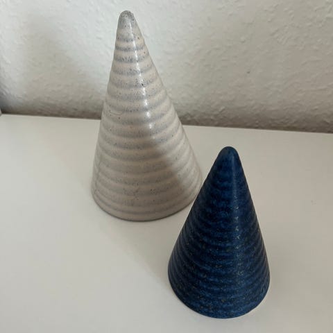 Kähler dekoration ornamenter formet som små huse i keramisk materiale med udskæringer, der tillader lys at skinne igennem. Hvid farve og minimalistisk design, velegnet til brug som lysdekoration eller pynt i hjemmet.