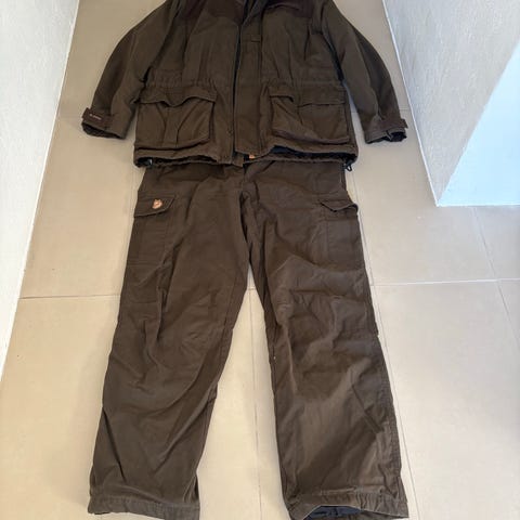 Fjällräven frakke i st xxl. Fremstår som nærmest ny. Varm. Med mange lommer / patron lommer. Jagt fiskeri. Nypris 3500,-