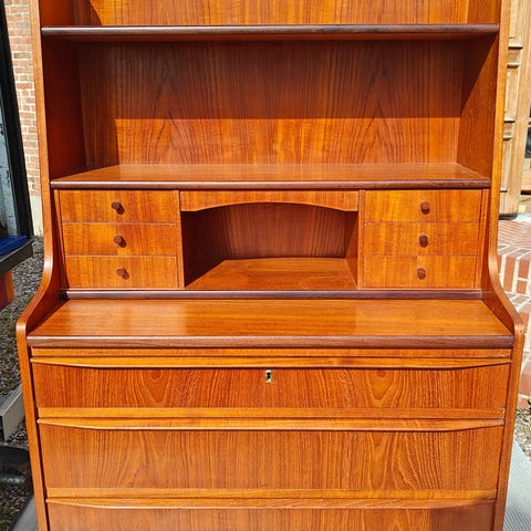 Spejlet er indrammet med detaljeret træarbejde, har to skuffer på hver side, samt to skuffer og et rum nedenfor. Møblet er et antikt kvalitetsmøbel. ,Afhentes i:,Røde Kors Virum (173),Bemærk at mail, chat og beskeder ikke besvares, og varen skal købes på knappen "Gå til varen"