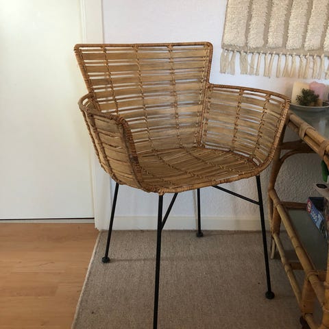 Stolen har en blød, polstret sæde og ryg af skind. Rammen er en simpel metalramme I tidsløst design. Stolen har syede detaljer på sæde og ryg I kanten.,Afhentes i:,Røde Kors Virum (173),Bemærk at mail, chat og beskeder ikke besvares, og varen skal købes på knappen "Gå til varen"