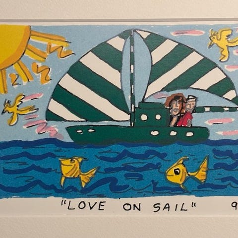 James Rizzi, Fun with the rope, 1994, offsettryk, signeret i pladen, begrænset antal, med ramme, 32 × 23 cm. Klik på den blå "gå til varen" knap, for at købe eller byde på denne vare. Den samlede pris vil blive vist inden du afgiver dit bud.