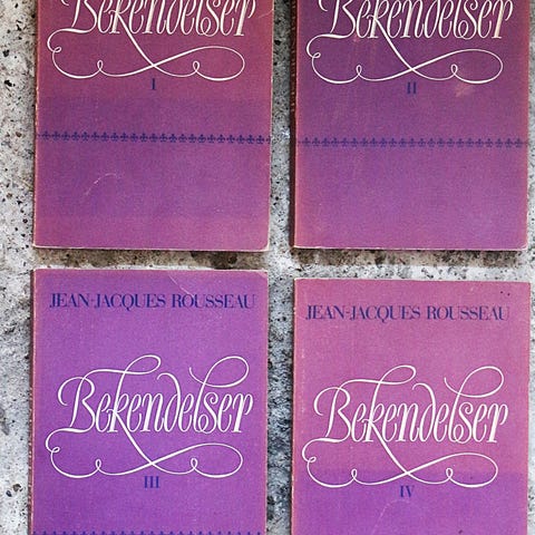 Første samlede udgave af værkerne af Jean-Jacques Rousseau udgivet i Genève i 1782, komplet med de 24 bind og de 6 bind af Supplément.