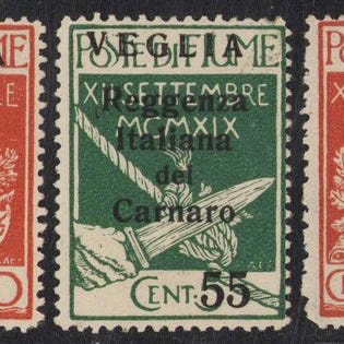 Fra Fiume, VEGLIA - 3 værdier med overtryk flyttet opad og en med tandningen flyttet opad, Sassone 5gaa/9gaa, mint med fuld linguella, Martinas-certifikat. Klik på den blå "gå til varen" knap, for at købe eller byde på denne vare. Den samlede pris vil blive vist inden du afgiver dit bud.