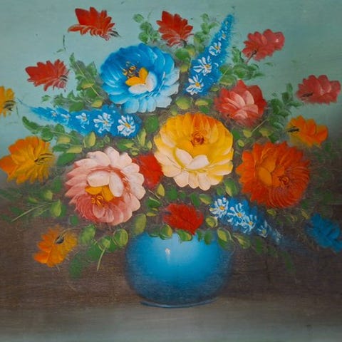 Oliemaleri af Salvatore Marchese (født 1947), kaldet ST, naiv kunst, original udgave, fra 1980–1990, 80 × 80 cm, Italien, underskrevet, i fremragende stand. Klik på den blå "gå til varen" knap, for at købe eller byde på denne vare. Den samlede pris vil blive vist inden du afgiver dit bud.