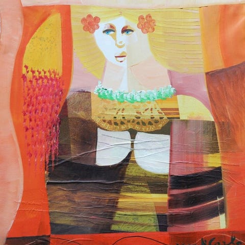 Olie på lærred - værk af den tjekkiske kunstner Jiří David (1956), en af de fremtrædende figurer i dannelsen af postmodernismen i den tjekkiske kultur i anden halvdel af 1980'erne. Signeret, tituleret og dateret 91 på bagsiden. Lærredets mål er 80x80. Indrammet i en moderne træramme.