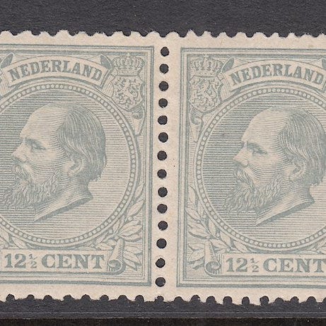 Oprindelse: Nederlandene; Koning Willem III, i mørk orange, par med højre kant, ubrugt, attest fra Nederlandsche Keuringsdienst. Klik på den blå "gå til varen" knap, for at købe eller byde på denne vare. Den samlede pris vil blive vist inden du afgiver dit bud.