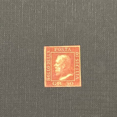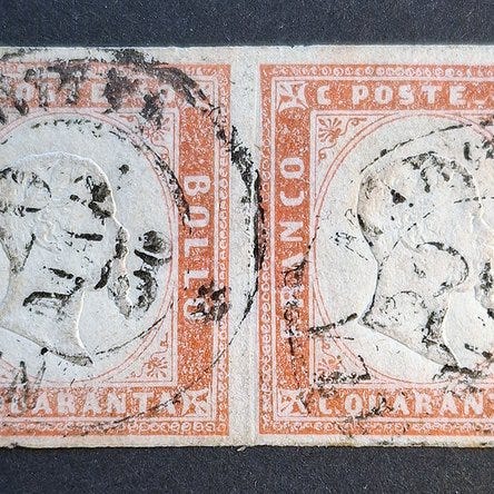 Sardegna - 10 c. 14Ci brunt, mørk chokolade, anden plade, brugt i Firenze, på lille originalt fragment, perfekt frimærke af fremragende kvalitet og friskhed, med meget intens nuance, signeret og klassificeret.