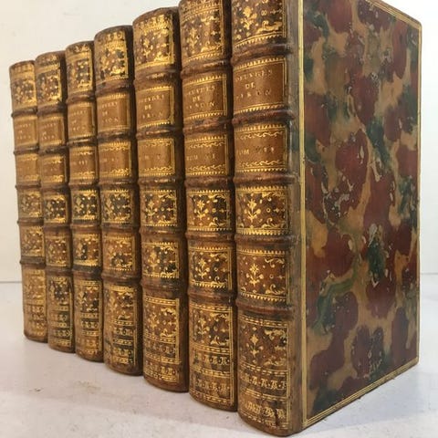 En prestigefyldt illustreret udgave af Quevedos værker, trykt i Madrid i 1772 i Joaquín Ibarras værksteder, den fineste trykker, sammen med Sancha, i det 18. århundredes Spanien. Bind V af hans værker, der indeholder de "Sidste Tre Castiljanske Muser". Illustreret med tre ekstraordinære stik (komplette), der forestiller muserne Euterpe, Calliope og Urania. Illustrationerne, som det var typisk for Ibarra, blev udført af datidens bedste tegnere og gravører. Indbundet i periodens fuldt pergament med en bogstavryg. Stærk og solid. Originaltekst på Quevedos castiliansk. Noget oxidering på