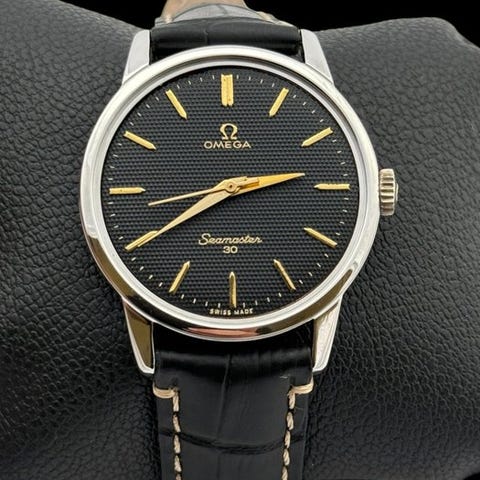 Omega Seamaster 30 herreur, reference 135.007-63, 1963, håndoptrukket Cal.286, stålkasse 35 mm, sort skærm genmalet, læderRem, stand meget god med mindre ridser. Klik på den blå "gå til varen" knap, for at købe eller byde på denne vare. Den samlede pris vil blive vist inden du afgiver dit bud.
